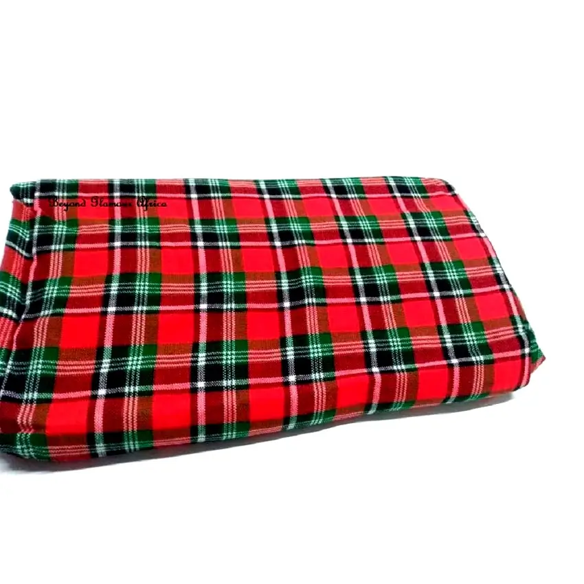 The Green Black and White Stripes Red Maasai Shuka, available at Executive Brands for only Ksh 1000, is a vibrant and authentic piece of African heritage. Crafted with high-quality, durable fabric, this iconic shuka combines bold red and blue checks, making it perfect for various uses, from traditional wear to decorative throws.